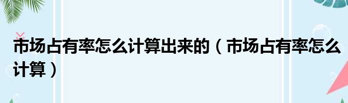 市场占有率怎么计算出来的(市场占有率怎么计算)