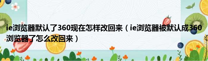 ie浏览器默认了360现在怎样改回来(ie浏览器被默认成360浏览器了怎么改回来)