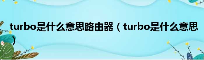 turbo是什么意思路由器(turbo是什么意思)