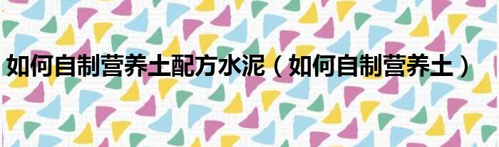 大家好,小东方来为大家解答以上的问题。如何自制营养土配方水泥,如何自制营养土这个很多人还不知道,现在让我们一起来看看吧!