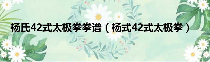 1、杨式42式太极拳名称:起势、右揽雀尾、左单鞭、提手、白鹤亮翅、搂膝拗步、撇身捶、捋挤势 、进步搬拦捶、如封似闭、开合手、右单鞭、肘底捶、转身推掌、玉女穿梭、左右蹬脚、掩手肱捶、野马分鬃、云手、 独立打虎、右分脚、双峰贯耳、左分脚、转身拍脚、进步栽捶、斜飞势;单鞭下势、金鸡独立、退步穿掌、虚步压掌、独立托掌、马步靠、转身大捋、歇步擒打、穿掌下势、上步七星、退步跨虎、转身摆莲、弯弓射虎、左揽雀尾、十字手、收势。