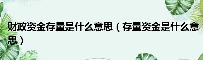 大家好,小东方来为大家解答以上的问题。财政资金存量是什么意思,存量资金是什么意思这个很多人还不知道,现在让我们一起来看看吧!