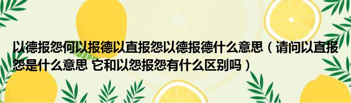 以德报怨何以报德以直报怨以德报德什么意思(请问以直报怨是什么意思 它和以怨报怨有什么区别吗)