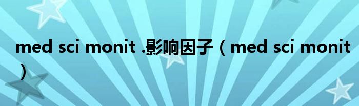 大家好,小东方来为大家解答以上的问题。med sci monit .影响因子,med sci monit这个很多人还不知道,现在让我们一起来看看吧!