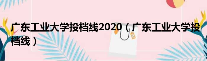 广东工业大学投档线2020(广东工业大学投档线)