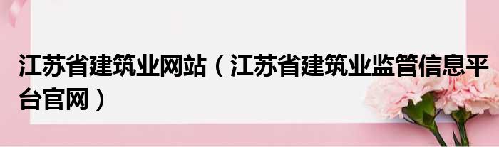 江苏省建筑业网站(江苏省建筑业监管信息平台官网)