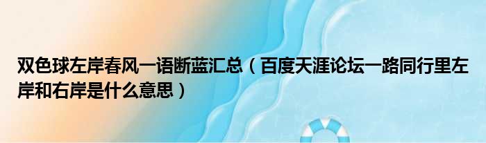 双色球左岸春风一语断蓝汇总(百度天涯论坛一路同行里左岸和右岸是什么意思)