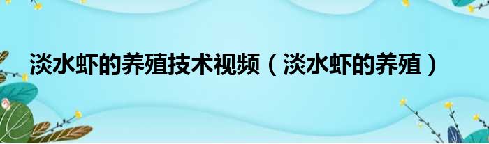 淡水虾的养殖技术视频(淡水虾的养殖)