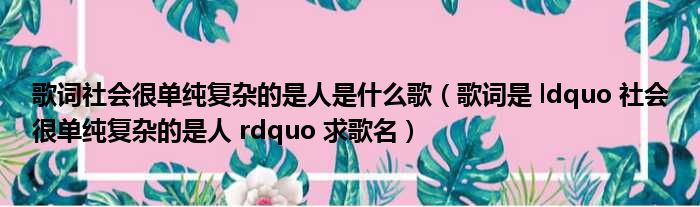 歌词社会很单纯复杂的是人是什么歌(歌词是 ldquo 社会很单纯复杂的是人 rdquo 求歌名)