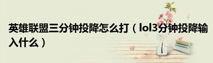 英雄联盟三分钟投降怎么打(lol3分钟投降输入什么)
