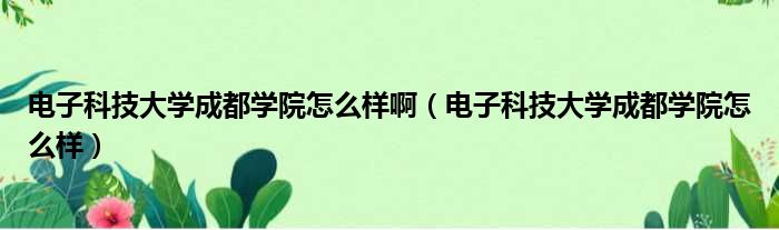 电子科技大学成都学院怎么样啊(电子科技大学成都学院怎么样)