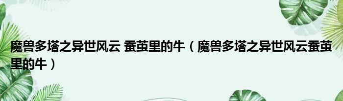 魔兽多塔之异世风云 蚕茧里的牛(魔兽多塔之异世风云蚕茧里的牛)