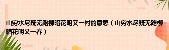 山穷水尽疑无路柳暗花明又一村的意思(山穷水尽疑无路柳暗花明又一春)