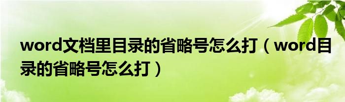 word文档里目录的省略号怎么打(word目录的省略号怎么打)