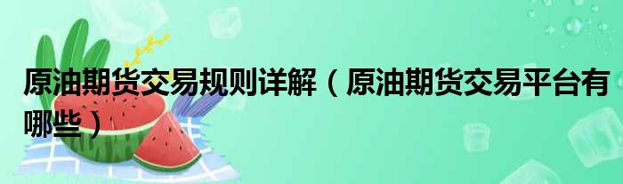 原油期货交易规则详解(原油期货交易平台有哪些)