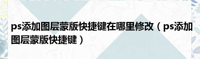 ps添加图层蒙版快捷键在哪里修改(ps添加图层蒙版快捷键)