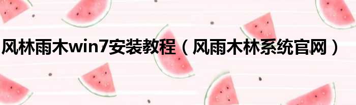 风林雨木win7安装教程(风雨木林系统官网)