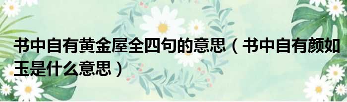 书中自有黄金屋全四句的意思(书中自有颜如玉是什么意思)