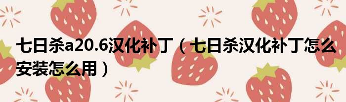 七日杀a20.6汉化补丁(七日杀汉化补丁怎么安装怎么用)