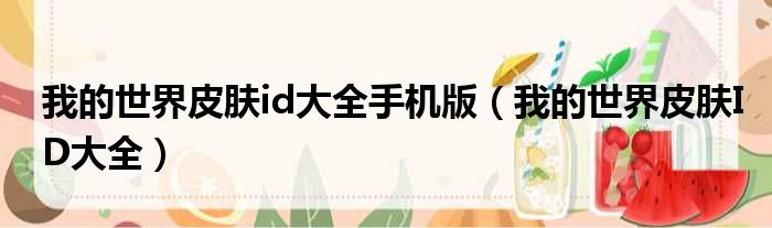 我的世界皮肤id大全手机版(我的世界皮肤ID大全)