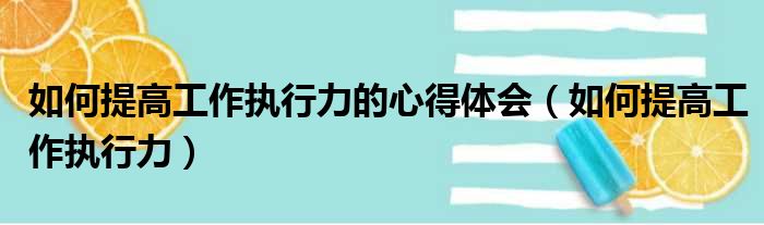 如何提高工作执行力的心得体会(如何提高工作执行力)