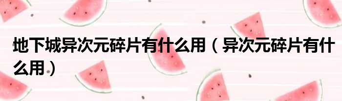 地下城异次元碎片有什么用(异次元碎片有什么用)