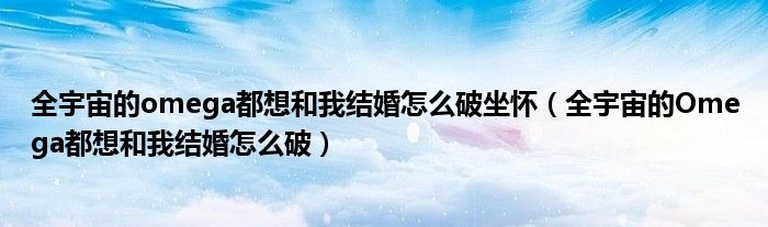 全宇宙的omega都想和我结婚怎么破坐怀(全宇宙的Omega都想和我结婚怎么破)