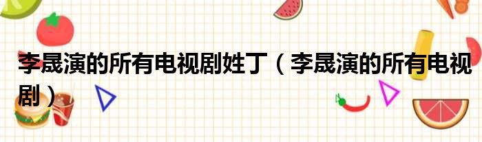 李晟演的所有电视剧姓丁(李晟演的所有电视剧)