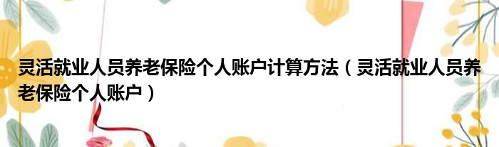 灵活就业人员养老保险个人账户计算方法(灵活就业人员养老保险个人账户)