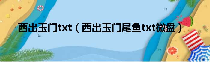 西出玉门txt(西出玉门尾鱼txt微盘)
