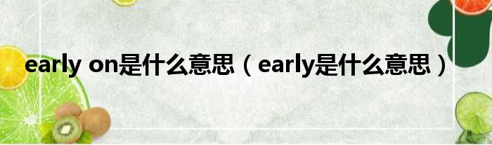 大家好,小东方来为大家解答以上的问题。early on是什么意思,early是什么意思这个很多人还不知道,现在让我们一起来看看吧!
