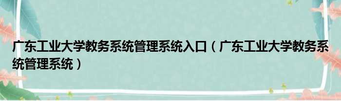 广东工业大学教务系统管理系统入口(广东工业大学教务系统管理系统)
