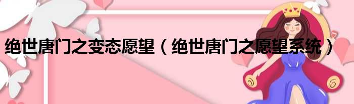 绝世唐门之变态愿望(绝世唐门之愿望系统)