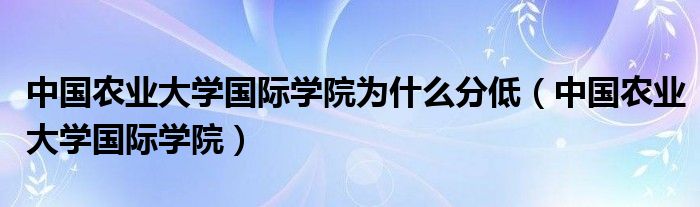 中国农业大学国际学院为什么分低(中国农业大学国际学院)
