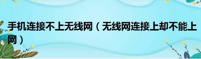 大家好,小东方来为大家解答以上的问题。手机连接不上无线网,无线网连接上却不能上网这个很多人还不知道,现在让我们一起来看看吧!