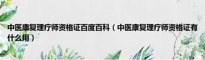 中医康复理疗师资格证百度百科(中医康复理疗师资格证有什么用)