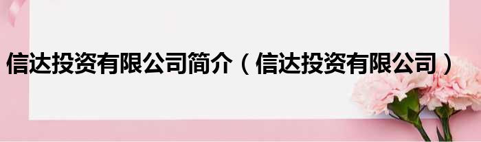 信达投资有限公司简介(信达投资有限公司)