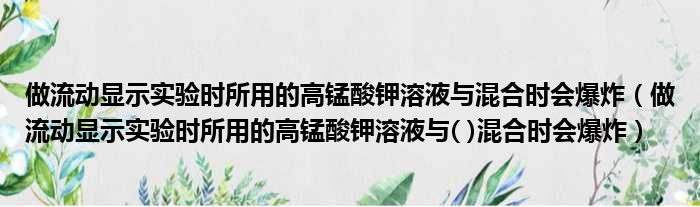 做流动显示实验时所用的高锰酸钾溶液与混合时会爆炸(做流动显示实验时所用的高锰酸钾溶液与( )混合时会爆炸)
