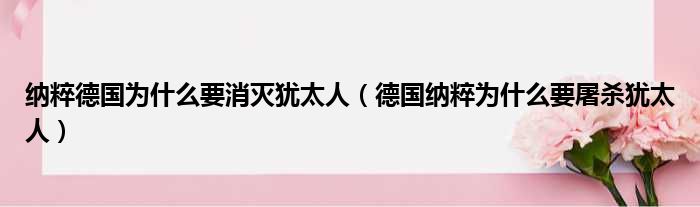 纳粹德国为什么要消灭犹太人(德国纳粹为什么要屠杀犹太人)