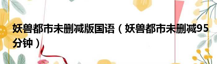大家好,小东方来为大家解答以上的问题。妖兽都市未删减版国语,妖兽都市未删减95分钟这个很多人还不知道,现在让我们一起来看看吧!