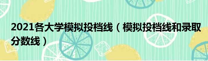 2021各大学模拟投档线(模拟投档线和录取分数线)