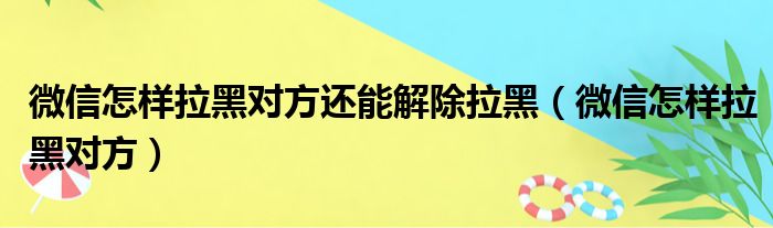 微信怎样拉黑对方还能解除拉黑(微信怎样拉黑对方)