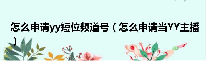 怎么申请yy短位频道号(怎么申请当YY主播)