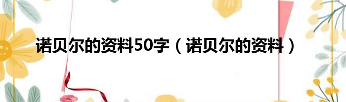 大家好,小东方来为大家解答以上的问题。诺贝尔的资料50字,诺贝尔的资料这个很多人还不知道,现在让我们一起来看看吧!