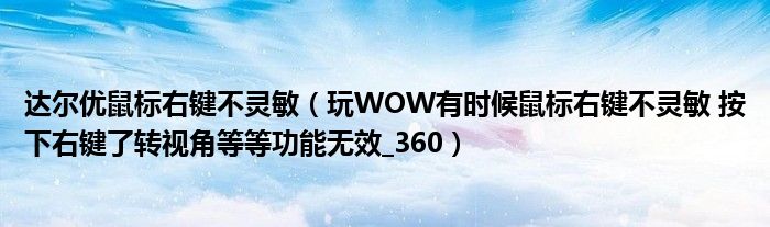 达尔优鼠标右键不灵敏(玩WOW有时候鼠标右键不灵敏 按下右键了转视角等等功能无效_360)