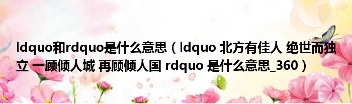 大家好,小东方来为大家解答以上的问题。ldquo和rdquo是什么意思,ldquo 北方有佳人 绝世而独立 一顾倾人城 再顾倾人国 rdquo 是什么意思_360这个很多人还不知道,现在让我们一起来看看吧!