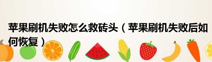 苹果刷机失败怎么救砖头(苹果刷机失败后如何恢复)