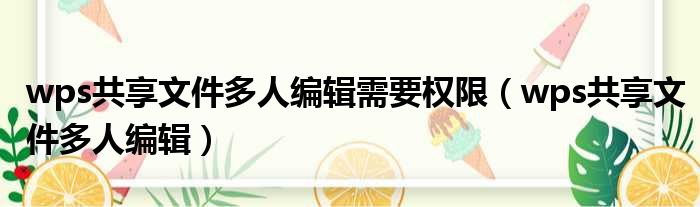 wps共享文件多人编辑需要权限(wps共享文件多人编辑)