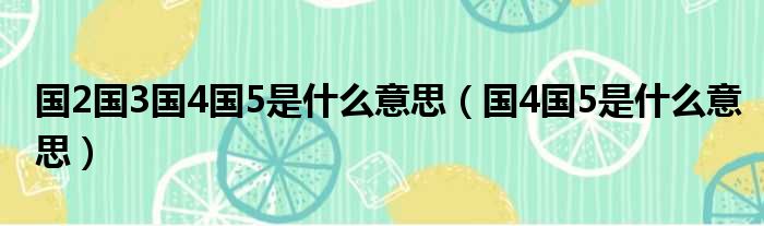 国2国3国4国5是什么意思(国4国5是什么意思)
