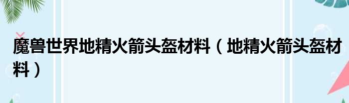 魔兽世界地精火箭头盔材料(地精火箭头盔材料)